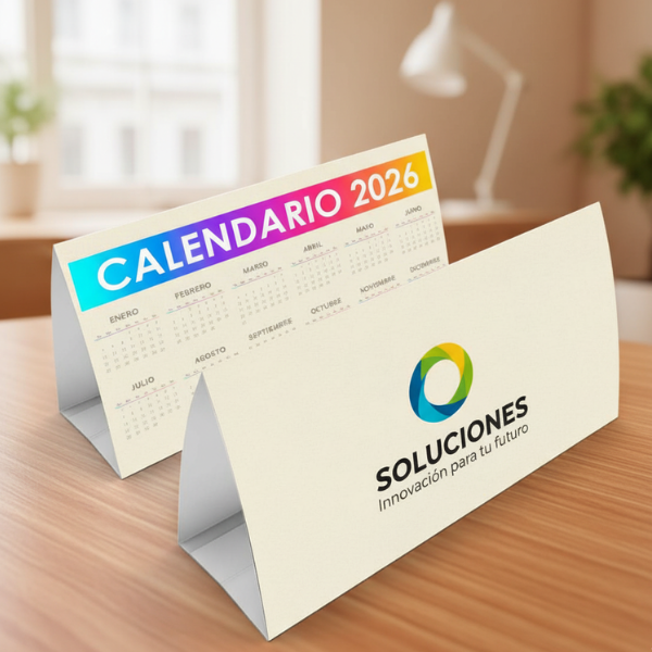 Fabricados con papel de alta calidad y encuadernación resistente, nuestros calendarios de sobremesa personalizados garantizan durabilidad y estabilidad en cualquier superficie. Perfectos como regalo corporativo, detalle promocional o accesorio decorativo para tu escritorio.